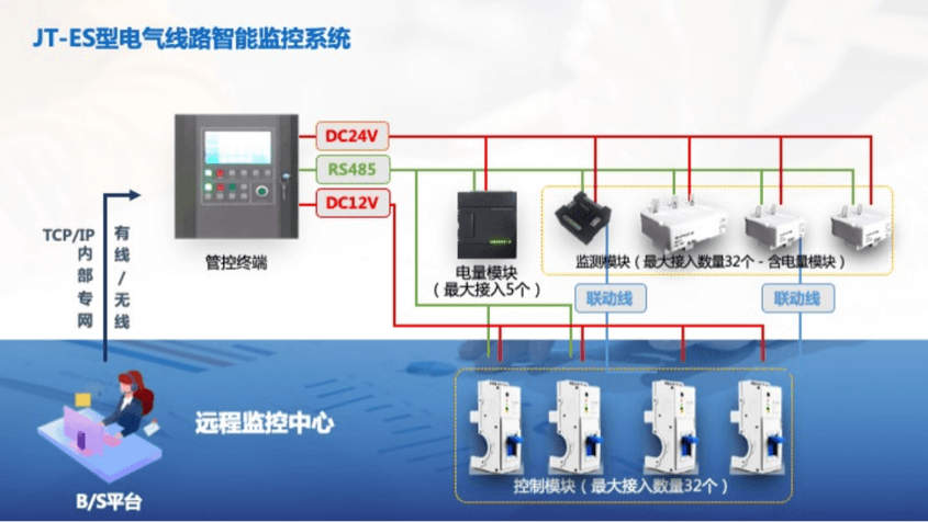 電氣線路智能監控解決方案,旨在消除潛在風險,規范用電安全。系統在不動(不改變)線路走向和保留配電系統電氣氣件和功能的基礎上,附加監測模塊和智能控制機構,實現分/回路電流、電弧、空開、接線溫度及控制功能。系統將電氣管理安全重心由事后處置轉向事前預警由防范現實侵害轉向排除潛在風險,達到安全和諧智能化升級工作目標。