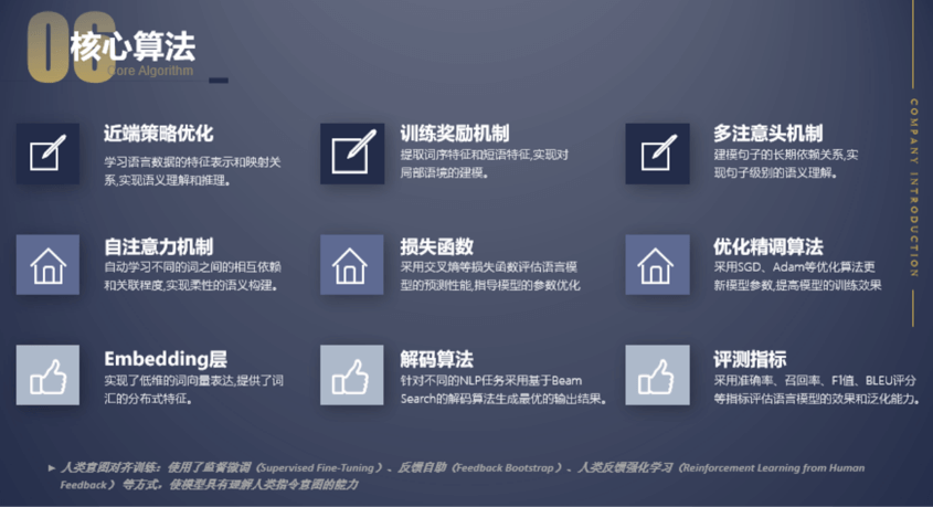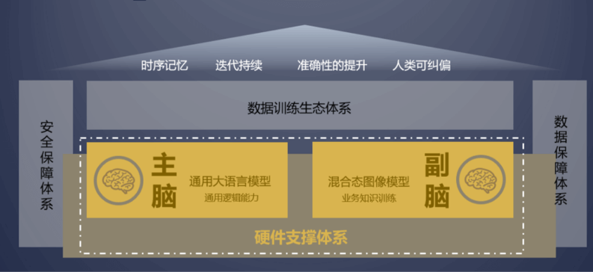 金融超腦(AI大語言模型在金融領域應用方案),采用主腦與副腦的雙腦引擎核心算法,掌握神經網絡算法、優化算法等多種技術以及各種解碼和評測算法等算力技術,并匹配主副腦管理系統、運維管理系統、數據投喂系統、用戶配置系統等支撐系統層,實現了語言模型從數據到產出的全過程。